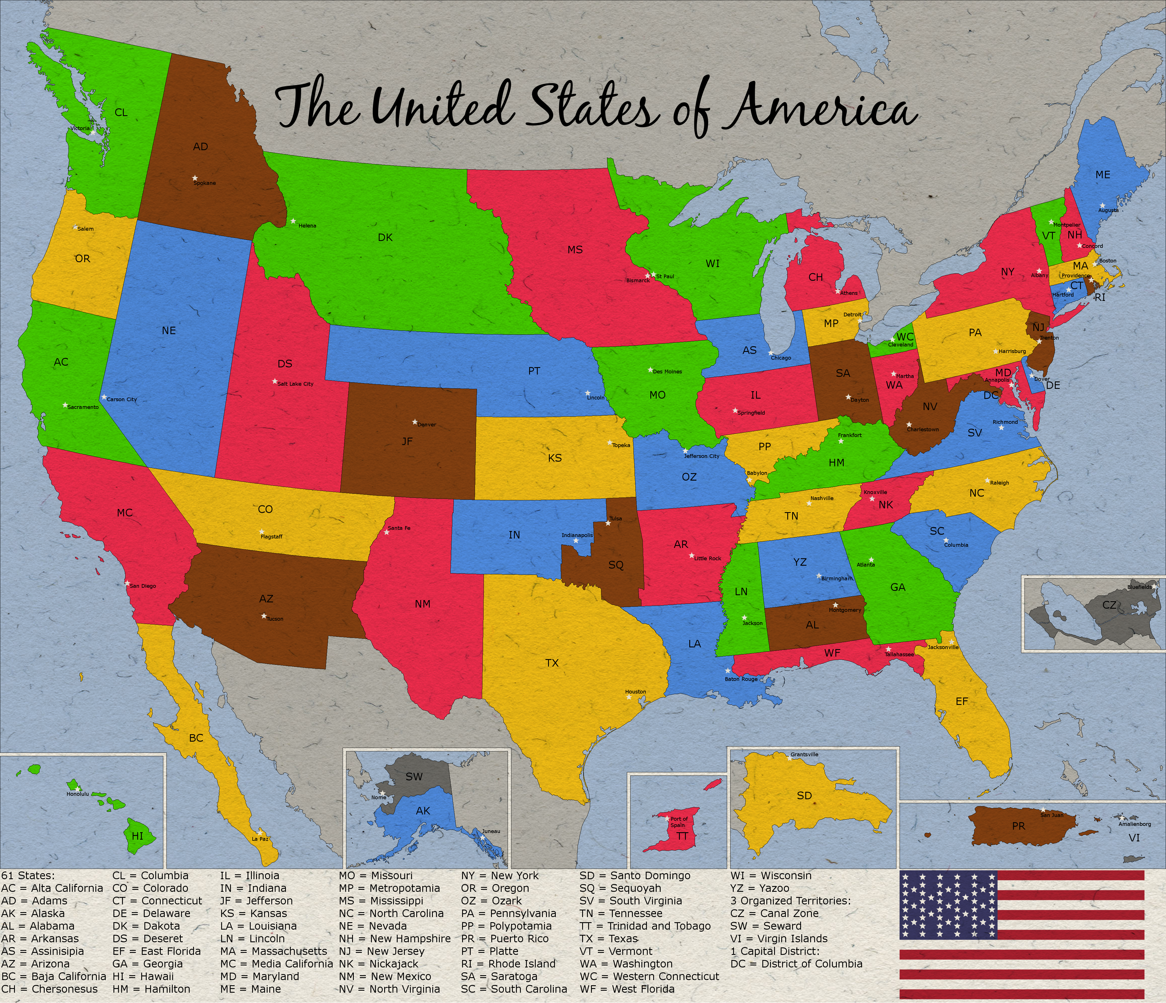 Alternate USA with some redrawn states, 1990 : r/imaginarymaps