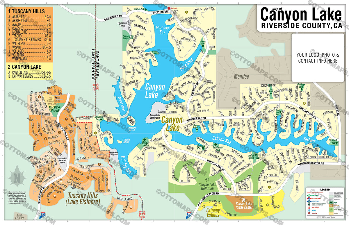 Canyon Lake Map with Tuscany Hills, Riverside County, CA โ Otto Maps
